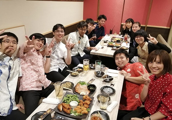 内定者と若手社員で入社前の懇談会。入社前に内定者同士、若手の先輩と交流できるので、なかなか評判が良いです。