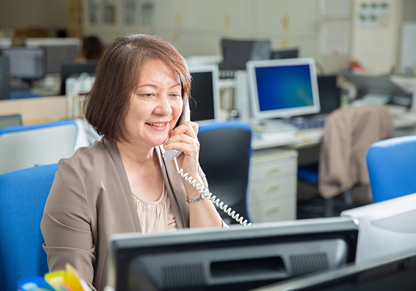 午後事務所内での管理作業。時にはお客様訪問もしながら営業スタッフの営業状況確認、お客様対応内容確認、今後の営業活動に向けた調査を行っています。